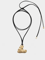 Collar de cordón ajustable con colgante de corazón de forma irregular. Efecto envejecido. Acabado dorado.