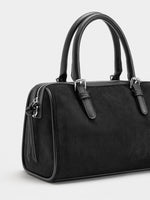 Bolso bowling grande efecto piel. Forro y bolsillo interior. Cierre de cremallera. Asas de mano fijas. Bandolera ajustable y extraíble.